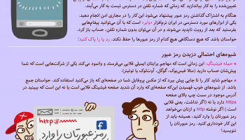 کلمه عبور، پسورد یا گذرواژه مهمترین و معمولترین روش محافظت از حسابهای کاربری در اینترنت است. از همین رو حفاظت از امنیت آن بسیار اهمیت دارد، زیرا اگر کلمه عبور حساب کاربریتان به دست دیگران بیافتد میتوانند از آن علیه شما استفاده کنند. بخش دوم از اینفوگرافیکهای مدیریت کلمه عبور روشهای امنی را بیشتر
