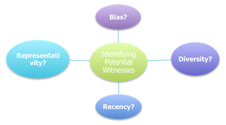 اولین گام در کار با شاهدان عینی «مشخص کردن نوع شاهد عینی» است که می‌خواهید با او مصاحبه کنید . برای رفتن به صفحه بعدی روی «بعدی» کلیک کنید تا پرسش‌هایی را که لازم است هنگام مشخص کردن شاهدان عینی به طور بالقوه به خاطر داشته باشید، مشاهده کنید.