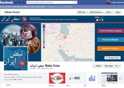 برای مثال به صفحه فیسبوک نبض ایران نگاهی بیاندازید. این صفحه به شما اطلاعاتی مشخص درباره حقوق بشر و نقض آن در ایران میدهد. کاربران این صفحه همچنین میتوانند اخبار رویدادها، حسابهای کاربری شاهدان عینی، نظرات، اطلاعات لازم در پیوند با حقوق سیاسی و مدنی، حقوق زنان و حقوق شخصی خود را به اشتراک بگذارند.