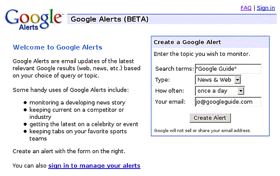 • ابتدا يکي از ابزارها را انتخاب کنيد. مثل Google Alerts: www.googleguide.com/alerts.html