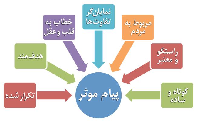 - پیامهای قوی تولید کنید. پیام را به گونهای تنظیم کنید که کوتاه، راستگو و مرتبط با نگرشها و دغدغههای مخاطب باشد و با قلب و ضمیر او سخن بگوید. پیام را در طول تلاش مدنی خود بارها و بارها و بارها تکرار کنید.