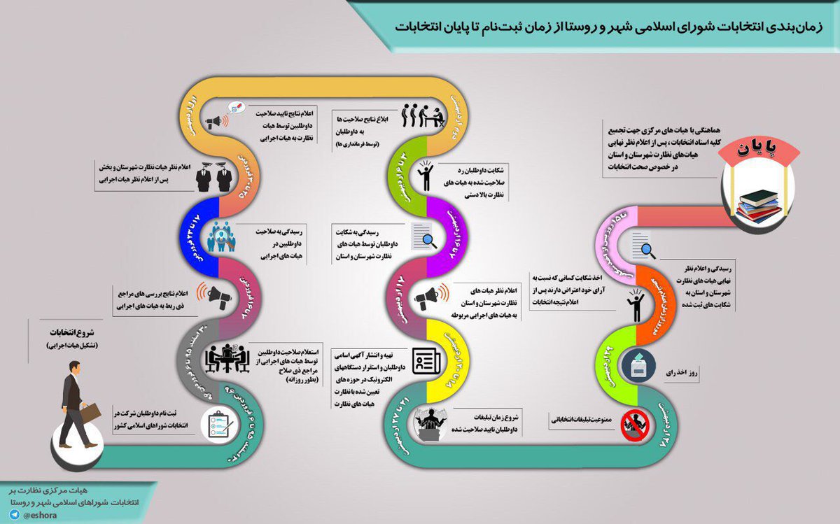 داده‌نما: زمان‌بندی انتخابات شوراهای شهر و روستا - ۱۳۹۶