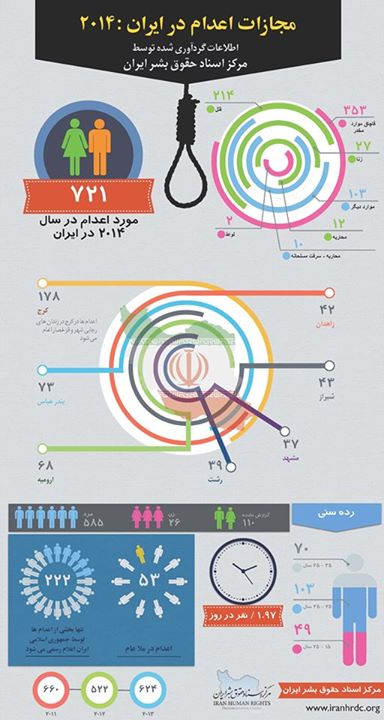 مرکز اسناد حقوق بشر ایران دادهنمائی را منتشر کرده از وضعیت اعدامها در کشور در سال میلادی گذشته ۲۰۱۴. این دادهنما احکام اجرا شده را با تفکیک نوع جرم، گستردگی جغرافیائی اعدامها و وضعیت دموگرافیکی آن نمایش میدهد.