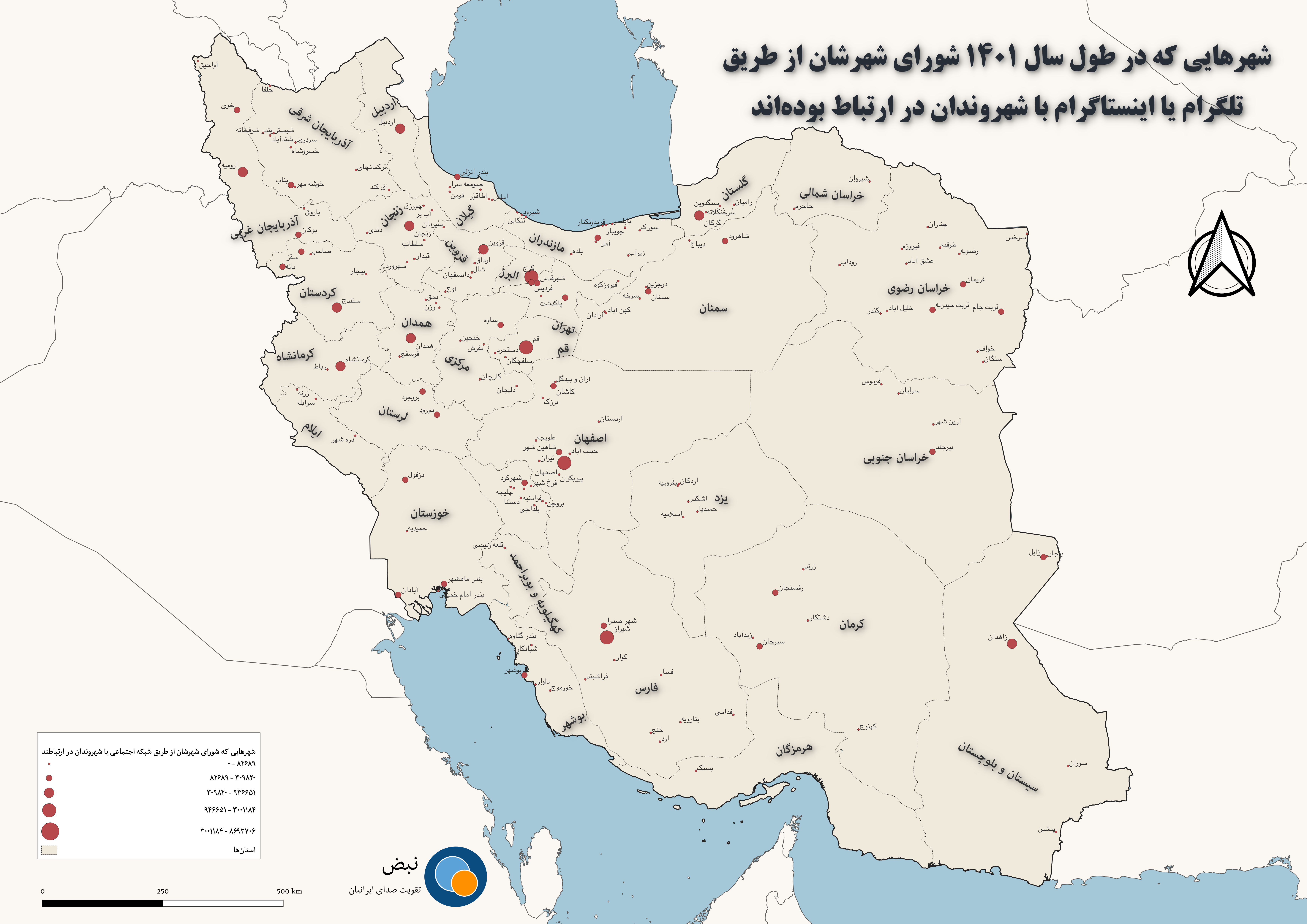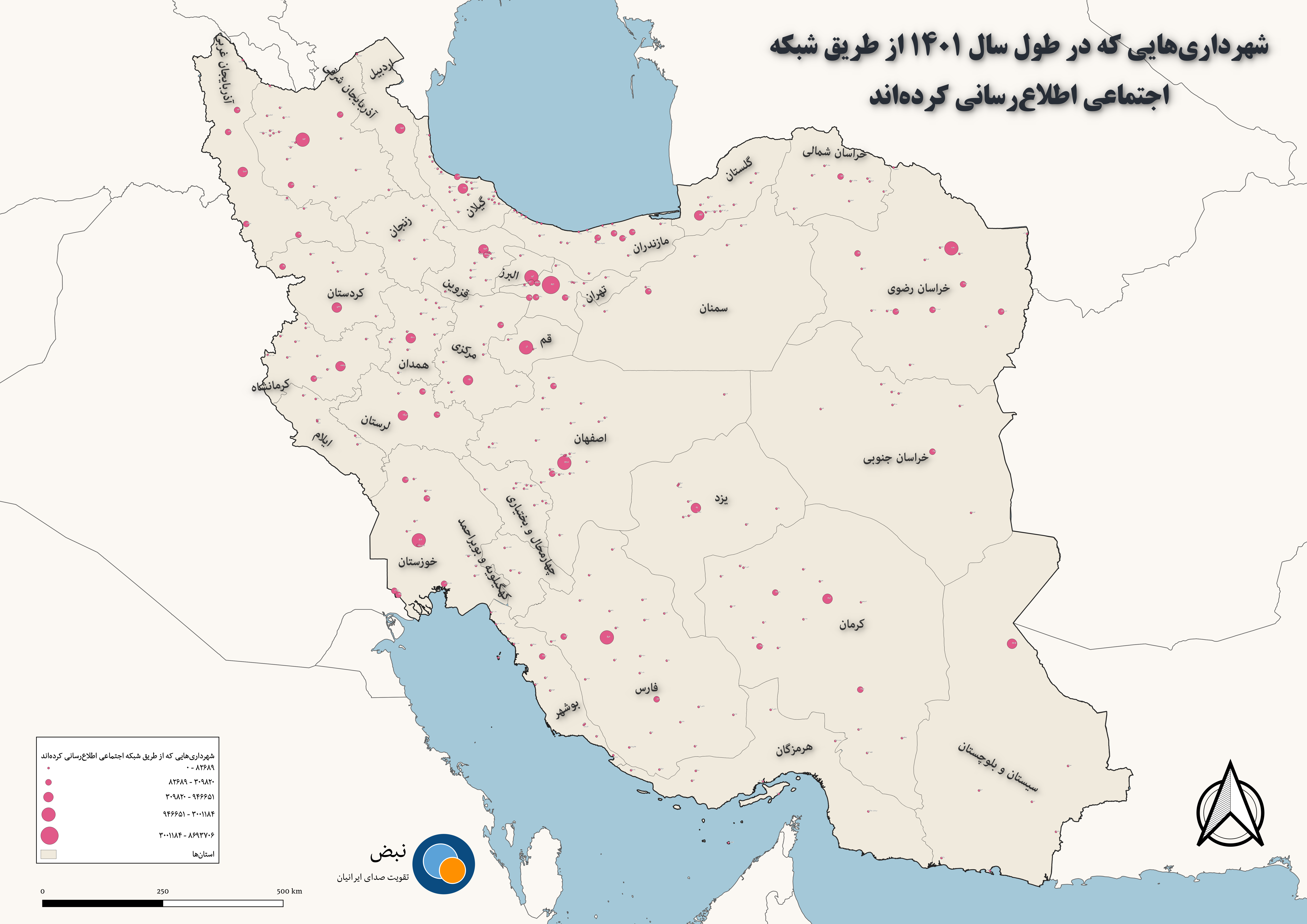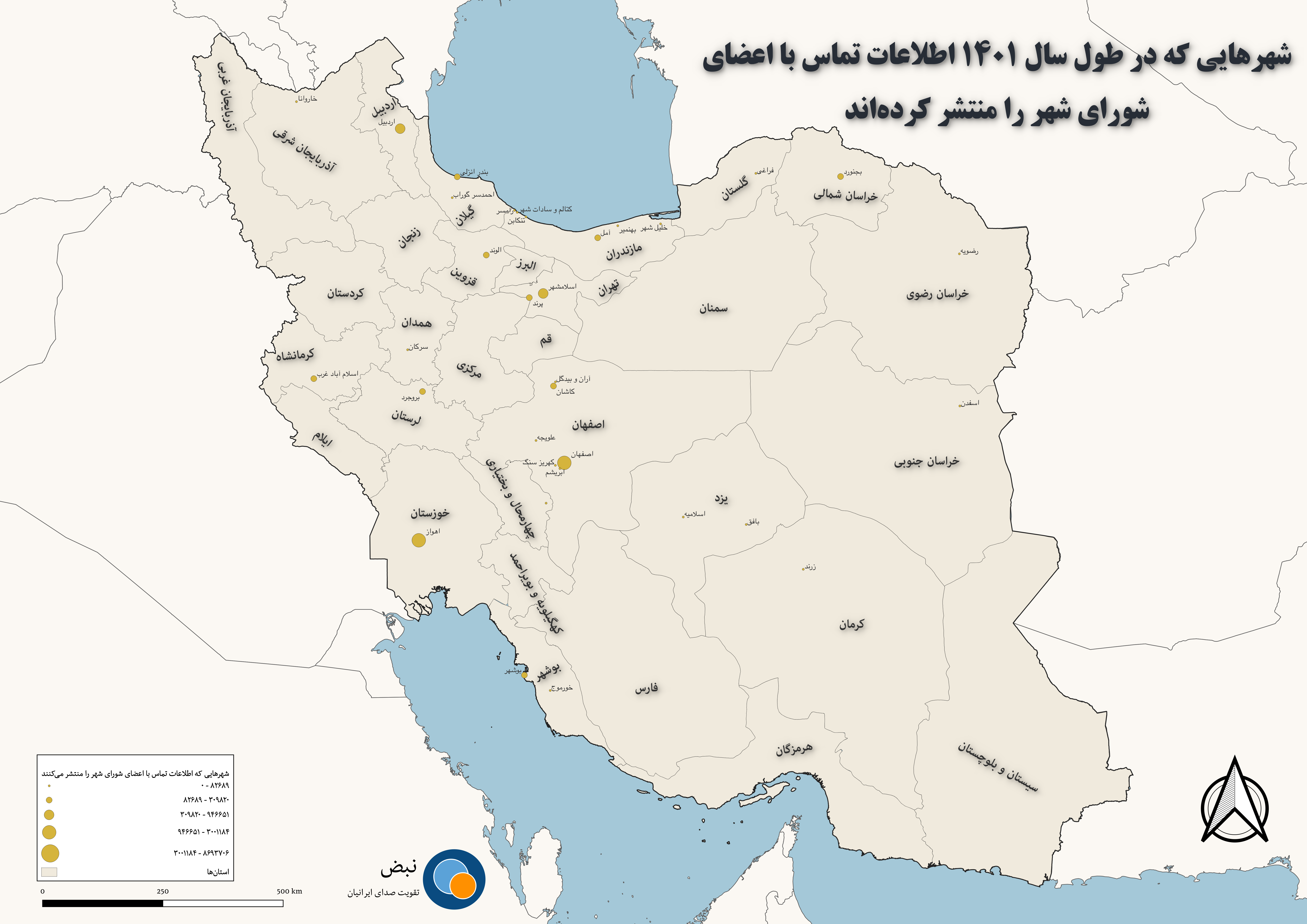 نقشههای بالا شمایی به دست میدهد از تلاش شهرداریها و شوراهای شهر از سراسر کشور در اطلاعرسانی و برقراری ارتباط با شهروندان. همان طور که بالا هم اشاره شد شهروند نیز در این زمینه نقشی دارد که باید بازی کند. یعنی او نیز باید پیگیر باشد، از این فرصت کمال استفاده را ببرد و از طریق ایجاد تعامل و ارائه بازخورد به نهاد شهرداری کمک کند شفافتر عمل کرده و مسئولان را وا دارد تا به نیازهای او و اجتماعش پاسخ دهند.