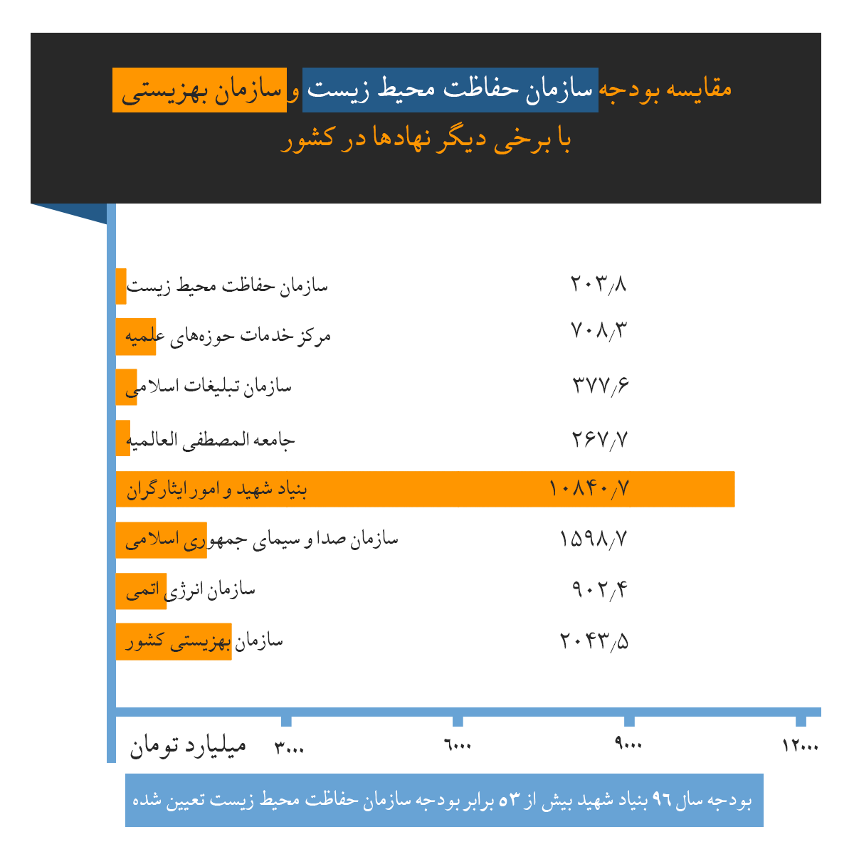 - دادهنما: مقایسه بودجه سال ۹۶ سازمان محیط زیست با برخی نهادهای دیگر در کشور