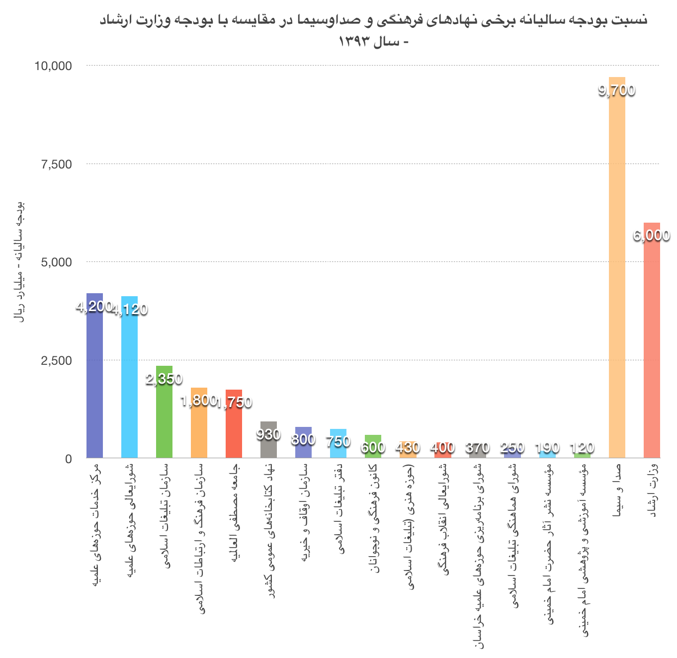 در ایران سازمان‌های موازی وجود دارند که با وجود دریافت بودجه عمومی تحت نظارت دولت یا مجلس عمل نکرده، به نهادهای انتخابی حاکمیت پاسخگو نیستند. نمودار زیر به گونه‌ای که در نامه سرگشاده صادق زیباکلام به امام‌جمعه تهران نیز آمده، بودجه سالیانه (برپایه بودجه سال ۹۳) برخی از سازمان‌های فرهنگی اسلامی در کشور را در کنار بودجه صداوسیما با بودجه وزارت فرهنگ و ارشاد اسلامی مقایسه می‌کند. یکی از راه‌هایی که افراد می‌توانند بر هزینه‌های عمومی نظارت کنند، نظارت شهروندی بر بودجه است. مطالب بیشتر در این زمینه را می‌توانید از طریق خودآموز مجازی نبض‌ایران، نظارت بر بودجه در سطح محلی و ملی، راهنمای بودجه در ایران، و دیگر منابع که به صورت رایگان از طریق لینک زیر قابل دسترس است، بیاموزید.