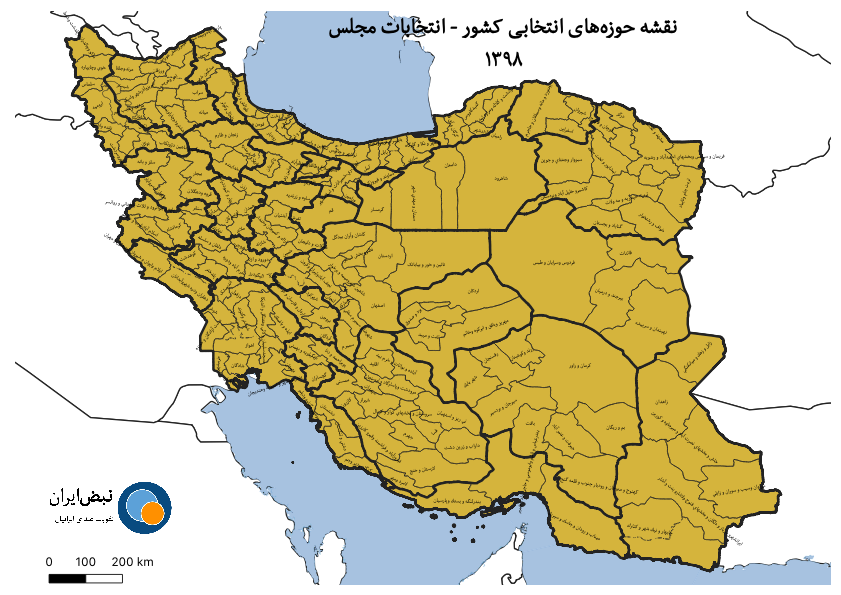 آیا با حوزه انتخاباتی محل کار یا سکونتتان آشنایی دارید؟ میدانید جمعیت حوزه چقدر است و چند کرسی در مجلس دارد؟ نقشه حاضر حدود جغرافیایی حوزههای انتخابیه کشور در انتخابات مجلس اسفندماه ۱۳۹۸ را نمایش میدهد.