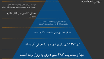 [نقشه با کیفیت بالا را از طریق لینک زیر دانلود کنید.]شمار بسیاری از شهرداریها در کشور از شبکه اجتماعی برای ارتباط با شهروندان استفاده میکنند. با این حال از یک سو دستورالعمل یا استانداردی مشخص برای این کار وجود ندارد و مشخص نیست که کجا باید به دنبال شبکه اجتماعی شهرداری گشت و از سوی دیگر پستهای بیشتر