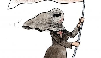 جنبش برابریخواهی زنان در ایران سابقهای طولانی دارد. با این حال زنان در ایران هنوز با چالشهای فراوان اجتماعی، فرهنگی و سیاسی روبرو هستند. کیانوش رمضانی در این کاریکاتور یکی از مهمترین چالشهای پیش روی زنان در ایران را به تصویر کشیده. بیان و ابراز زن بودن. اینکه زنان آنچه را که برایاش به پا بیشتر